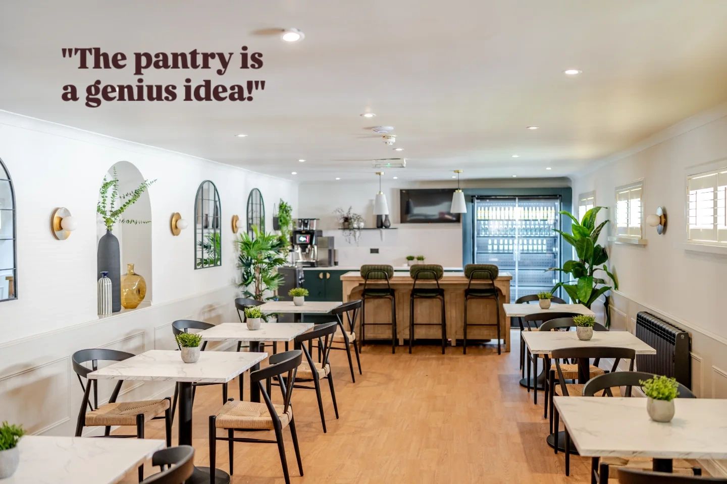 With natural tones, soft lighting, and greenery throughout the Pantry, the coffee solution needed to feel curated and refined — enhancing the space rather than overpowering it.